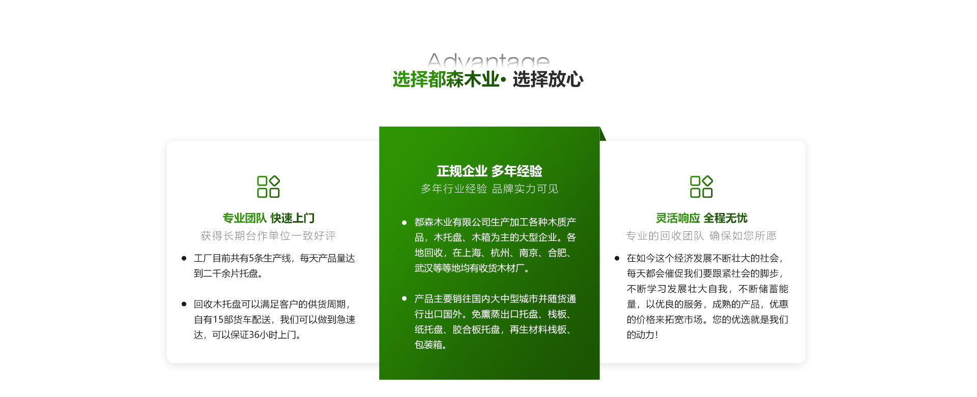 都森木業(yè)有限公司是一家以回收木托盤、木材,生產(chǎn)加工各種木質(zhì)產(chǎn)品,木托盤、木箱為主的大型企業(yè)。自建公司以來,我公司根據(jù)市場經(jīng)濟的發(fā)展趨勢,在經(jīng)濟逐步前進的前提下發(fā)展壯大自己,不斷引入先進的生產(chǎn)設備,科學的管理理念,過硬的生產(chǎn)技術和嚴密的質(zhì)量管理體系。加工:公司下轄木材加工廠,組裝廠,并備有大型標準烘房,多功能平板刨,壓刨,挖槽,機械設備等。產(chǎn)品主要銷往國內(nèi)大中型城市并隨貨通行出口國外。免熏蒸出口托盤、棧板、紙托盤、膠合板托盤,再生材料棧板、包裝箱。工廠目前共有5條生產(chǎn)線,每天產(chǎn)品量達到二千余片托盤。可以滿足客戶的供貨周期,自有10部貨車配送,我們可以做到急速達。回收:公司建立以來長期以現(xiàn)金收購各種規(guī)格木托盤,塑料托盤,棧板,復合托盤,木箱,收購價格以托盤木箱的規(guī)格、使用情形、新舊程度、材質(zhì)為估價標準。可上面看貨。我們將以豐富的知識,提供“量身定做”的方案來服務和滿足每一用戶不同的需求,現(xiàn)金...